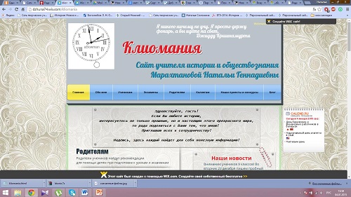 На сайте представлены порфолио учителя, включающее его достижения, методические наработки и материалы по методической теме. Ученикам предлагаются материалы для изучения вопросов истории, обществознания, онлайн-тесты и пр.